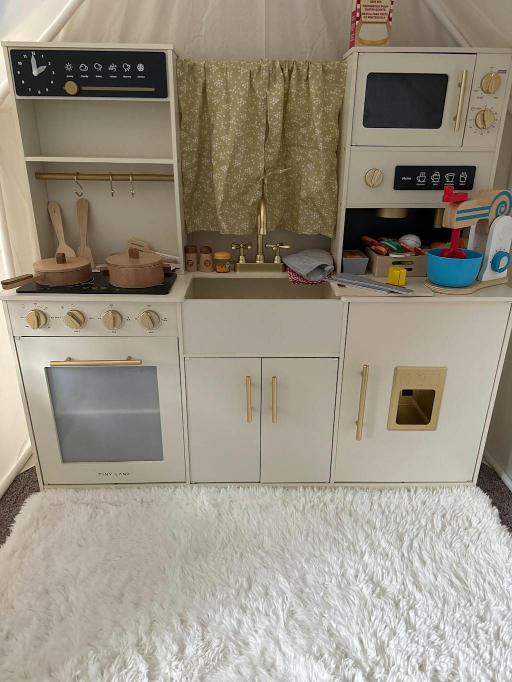 Charming Little Details : From those cute-as-a-button curtains to a handy rack for dangling those precious utensils, we've got charmed in every corner! And guess what? There's an array of tie-in products waiting to join the fun! Just pop into our pretend play collection, and take your pick. 🎁