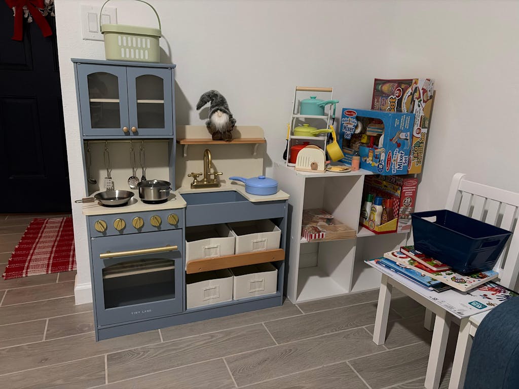 Get ready for a cozy countryside retreat in your playroom! Presenting our Tiny Land® Multifunctional Storage Play Kitchen in a refreshing sage green. This charming kitchen blends soft green with natural wood accents and golden touches, creating a soothing and nature-inspired space for your little one’s culinary adventures.