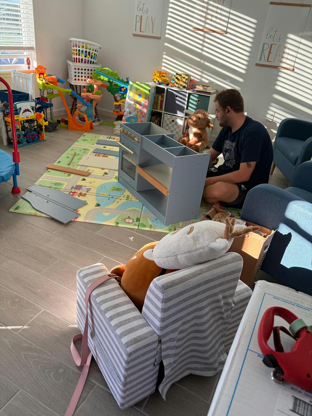 Blending modern style with practicality, this sage green play kitchen features clever storage solutions to keep everything neat and tidy. Tall cabinets are perfect for storing special cups, while lower shelves keep everyday items within easy reach. The transparent design adds a stylish flair, while the felt storage boxes make organizing fun and easy for little ones.